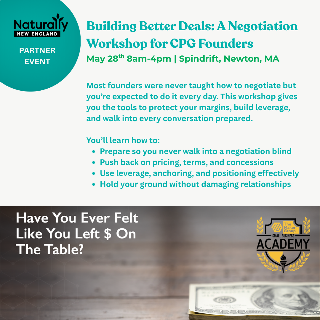 Naturally New England is proud to partner with The Maker Group to share their upcoming Small Business Academy, a full-day, in-person seminar designed for founders and operators looking to strengthen one of the most critical business skills: negotiation.